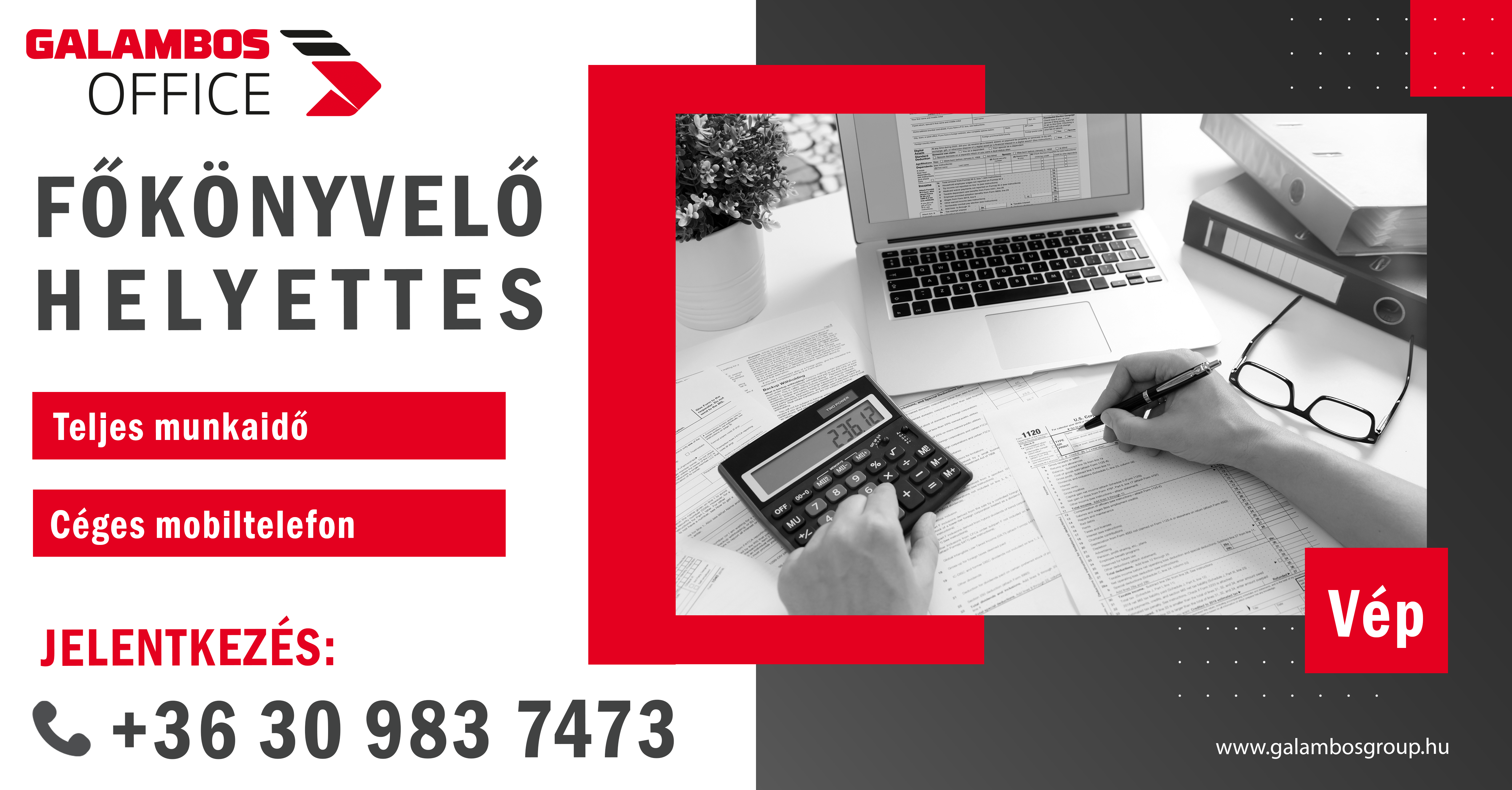 A Galambos cégcsoport tagja, a Galambos Office Kft. (Vép) könyvelési csapata keresi munkatársát. Leendő kollégánk a főkönyvelő irányítása mellett végzi az alábbi feladatokat: